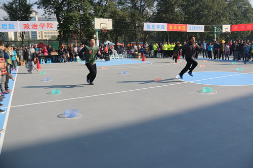 第四十四届体育运动会终于正式开幕,其中教工趣味运动会在本校田径场南面篮球场举行。