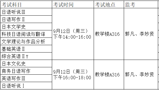 请需要参加考试的学生仔细核准自己需要考试的课程名称,珍惜考试机会,不要错过考试时间。*请需要补考的同学查看考试日程,如时间有冲突请提前联系外语院教务办。