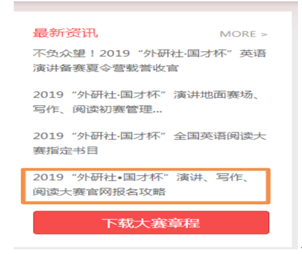1. 报名方式:本次比赛采用线上报名的方式,可同时报名参加阅读、写作两项赛事。报名请登陆//uchallenge.unipus.cn/网站,并仔细阅读网页右上方的2019“外研社·国才杯”写作、阅读大赛报名攻略(见下图桔色方框圈出部分)进行网上报名。