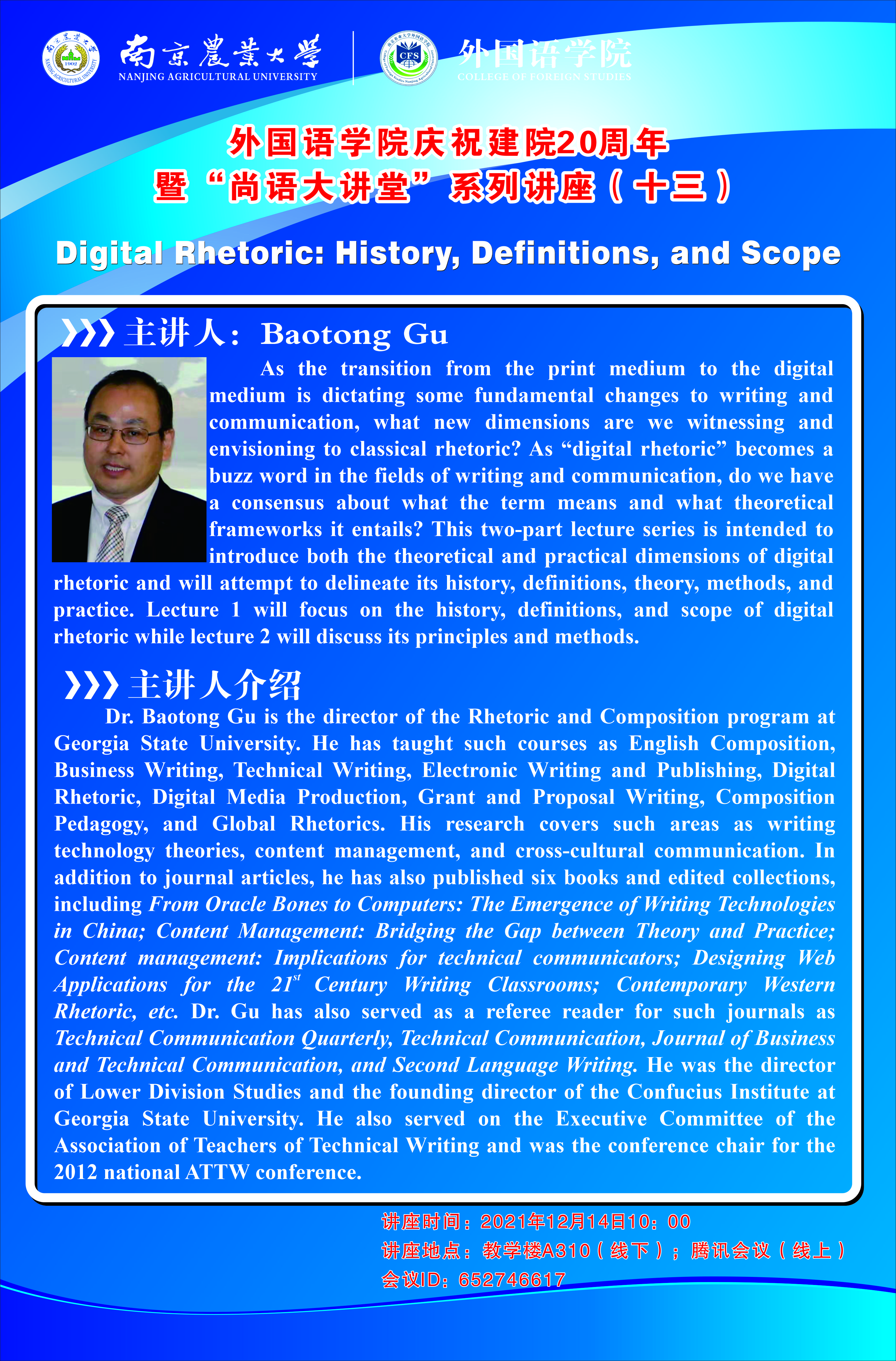 讲座地点:教学楼A310(线下);腾讯会议(线上)