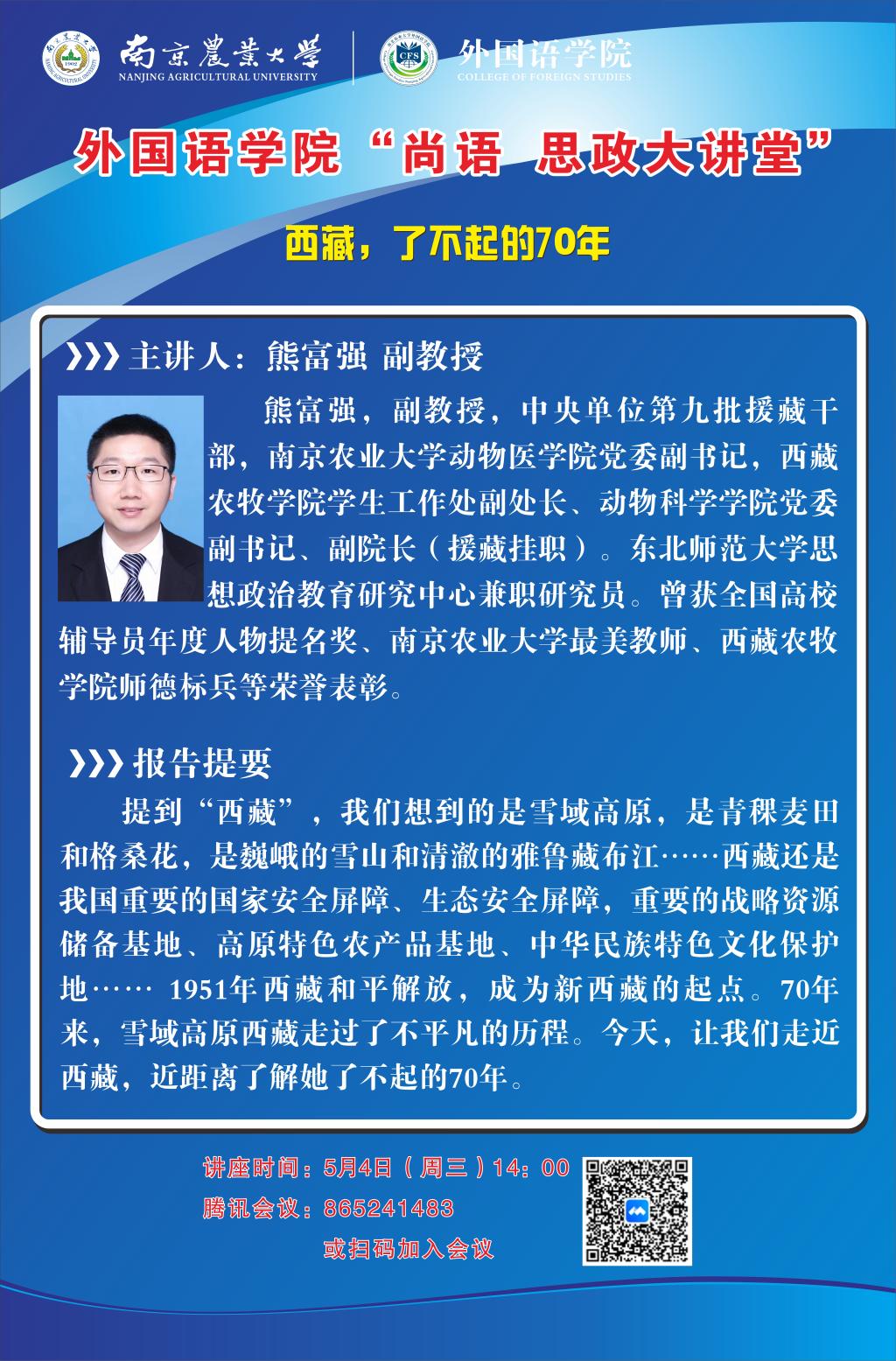 讲座时间:5月4号(周三)14:00