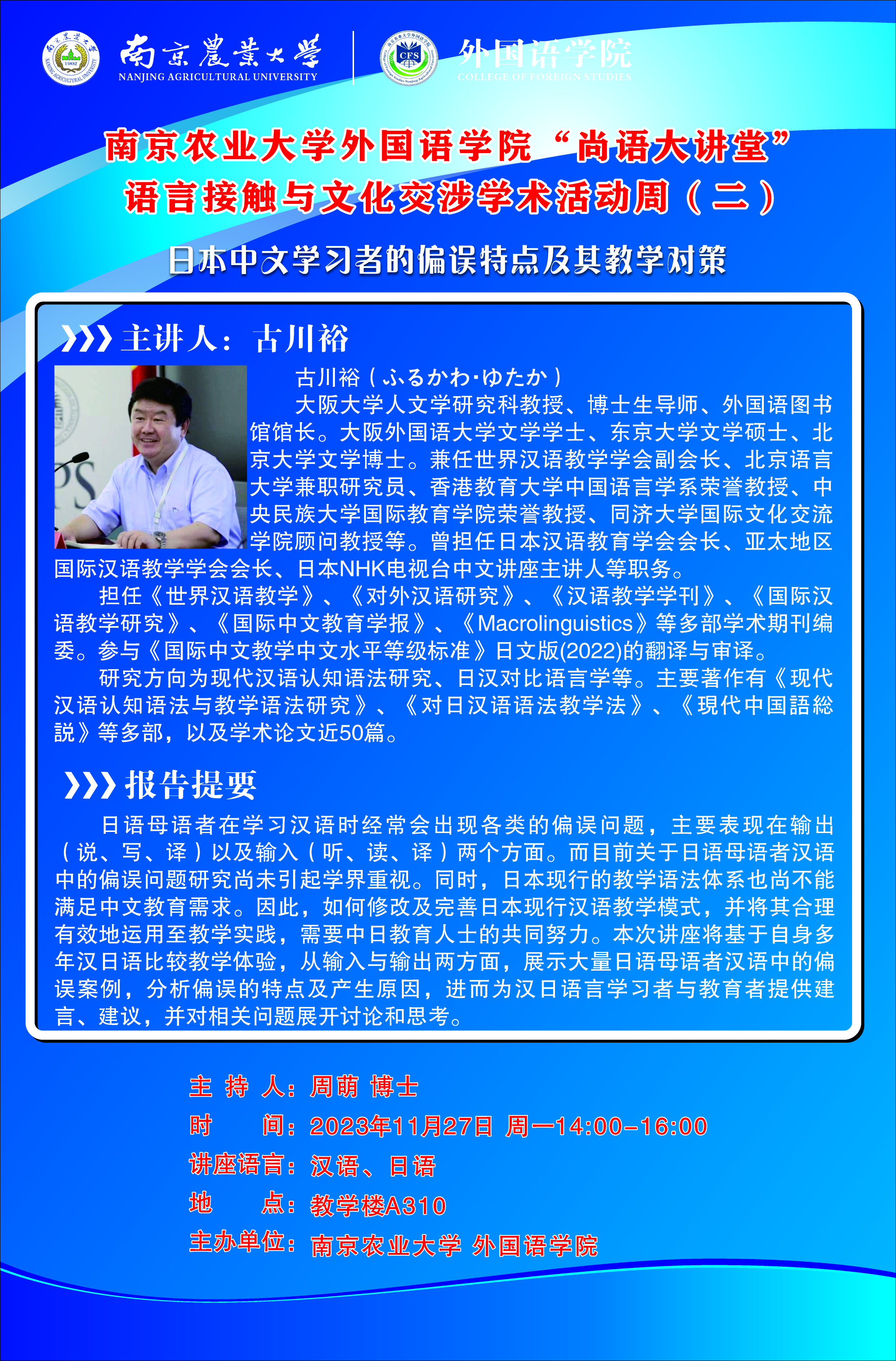 下一篇:讲座|语言接触与文化交涉学术活动周(二)中国的日语教学与日本的汉语教学: 共同课题和个别课题