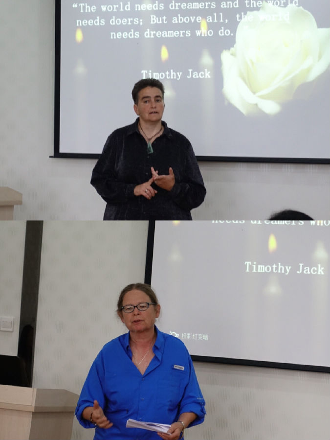 感谢蒂姆对学院做出的贡献,其广博的专业知识和扎实的教学功底深受学生欢迎,博得同事的好评;他对中国文化的热爱及对中国人民的深情厚谊,在构建人类命运共同体的新时代更加值得弘扬。当前,学校正在加强师德师风建设,我们要学习蒂姆的敬业、谦和、勤于奉献的师德情操,为学校培养更多的优秀人才贡献力量。韩纪琴对吉尔及其家人为学院提供的帮助表示衷心感谢。