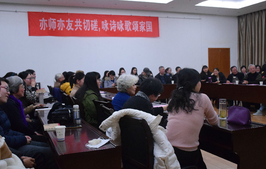 党委主办的“亦师亦友共切磋,咏诗咏歌颂家国”新老党员交流会在教学楼七楼报告厅圆满举办。本次活动邀请校关工委的9位老党员同志和学院4位退休教师出席,学院党委书记韩纪琴、副书记董红梅、辅导员贾琼以及部分学生党员参加,活动由甄亚乐主持。