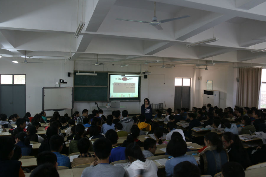 辅导员徐文为200名学生主讲生涯规划体验课。徐文以“如何成为一名大学老师,或任何一个真实的你自己”为主题,与学生共同探讨作为高中生的现在与作为职业人的将来,鼓励他们把握当下、积极规划,现场互动频繁、气氛热烈。第三部分是由冯婉珍、郑晨两位研究生为100个高中生作题为“你们不知道的植物保护”的科普知识互动活动。他们向学生所作的展示和解说生动有趣,所携带的昆虫标本吸引了众多学生,引发了热烈的提问和讨论。