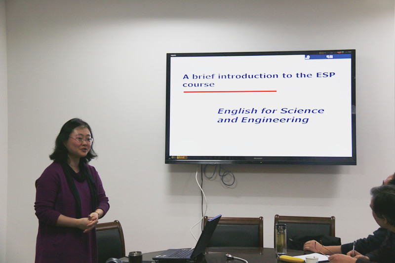 工学院ESP课程的授课对象为已通过大学英语六级的学生,教学方式上采用以学生为中心的任务型教学法,学生以小组为单位完成学期项目并进行小组展示,将语言学习、ESP课程任务和学生的专业结合起来。小组汇报时,小组成员各有分工,并且需要体现所学的ESP课程内容,这种合作学习的方式有效调动了学生的积极性。学生还需要在课后用英语进行网络在线讨论,提高用英语交流的能力。姜老师也提出了该课程在教师、教材、小组活动中存在的问题以及老师们的思考。王歆老师上了一次精彩的示范课,通过生动有趣的例子讲解了CPM(Critical Path Method)的概念以及如何引导学生将CPM运用到学生的项目中。