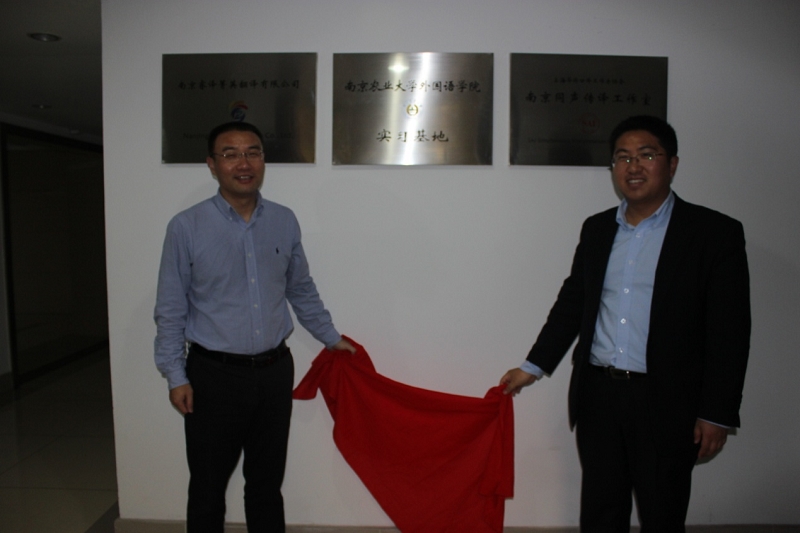 王宏林副院长、姚科艳副书记、以及英语系、日语系部分老师和MTI学生考察了位于学校附近的睿译菁英公司,与公司总经理王彬、王亚若等举行了友好而务实的交流。王宏林和王彬分别代表双方签署了共建实习基地协议,并为基地揭牌。