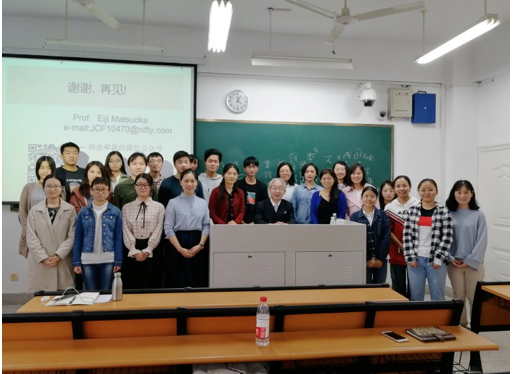 松冈教授不仅与师生们交流学术,也用诙谐幽默的语言分享了一些自己的人生经历,并鼓励同学们努力学习,细心钻研。通过其为期一周时间的讲座,同学们了解到了之前课堂上没有接触过的新领域,开阔了知识面,对以后的日语学习有很大帮助。