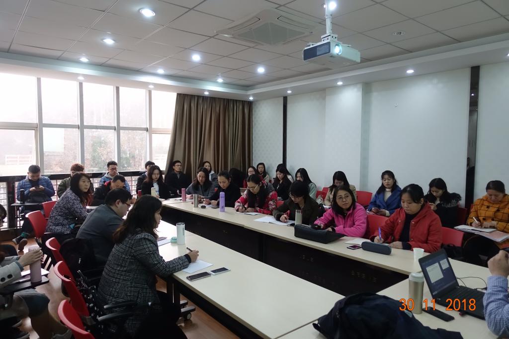 讲座结束后,沈骑教授和参加讲座的教师和研究生进行了亲切的交流。沈骑教授的讲座,不但为大学外语教师开展外语教学研究打了“强心针”,增强了大家立足课堂开展研究的信心,而且为在座的教师和研究生指出了大学外语教学研究更广阔的视野,做出了开展大学外语教学研究的建议,为营造更加浓厚的外语教学研究氛围起到了推动作用。