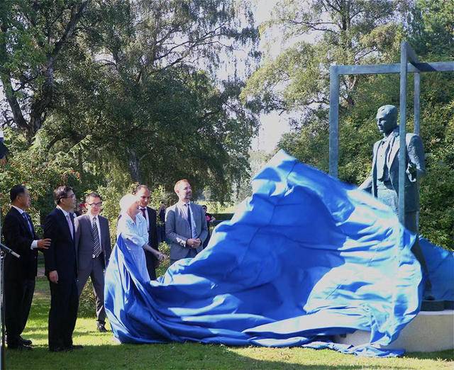 丹麦女王玛格丽特二世亲自为雕像揭幕。出席此活动的还有中国驻丹麦大使冯铁、哥本哈根中国文化中心主任张力、南京市人民政府代表、市委宣传部副部长、新闻办主任彭振刚、奥胡斯市市长雅各布·本斯高,奥胡斯市分管文化副市长拉比·赫阿扎德-艾哈迈德等。来自美国、法国和丹麦的辛德贝格的家属们,领导和嘉宾与各国媒体以及广大奥胡斯市民约两百余人共同见证了这一历史时刻。哔咔漫画