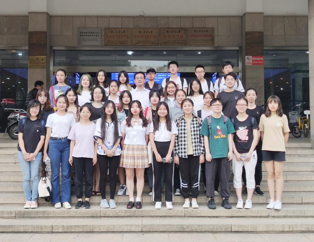 班会结束后,胡校长与班级同学一起在教学楼前合影留念。