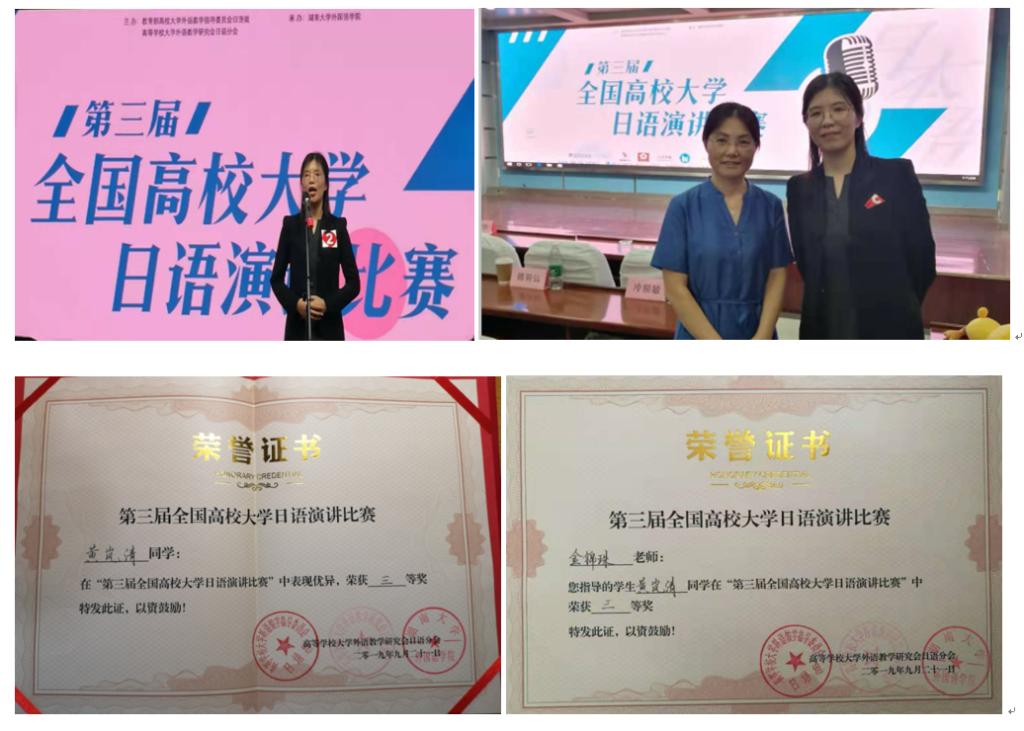 金锦珠获得优秀指导教师奖。来自全国高校的39名非日语专业学生参加角逐,比赛分为命题演讲和即兴演讲两个环节,选手们的出色表现受到评委的一致好评。