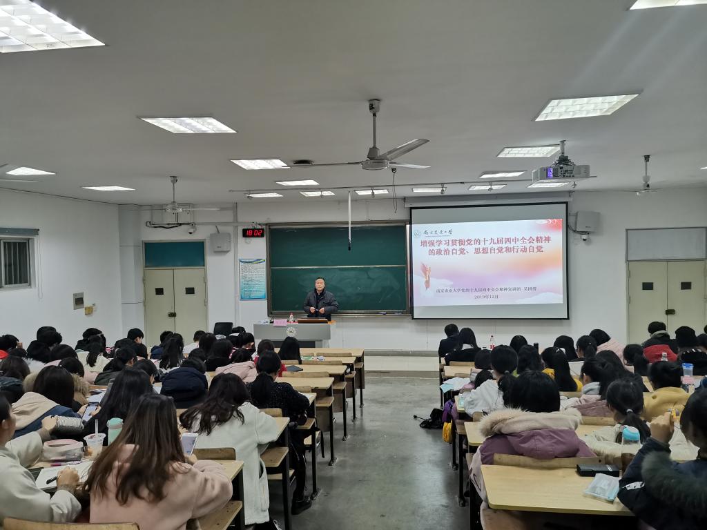 韩立新在总结发言中强调,要坚持读原著、学原文、悟原理,以宣讲报告为契机,认真研读党的十九届四中全会的《决定》,紧密结合本职工作和学习实际,加强学习宣传和领会落实,将全会精神内化于心、外化于行,提高认识,推进工作,要认真学习贯彻学校第十二次党代会精神,在今后的学习和工作中,努力为学校农业特色世界一流大学建设和学院的建设发展做出新的更大的贡献。