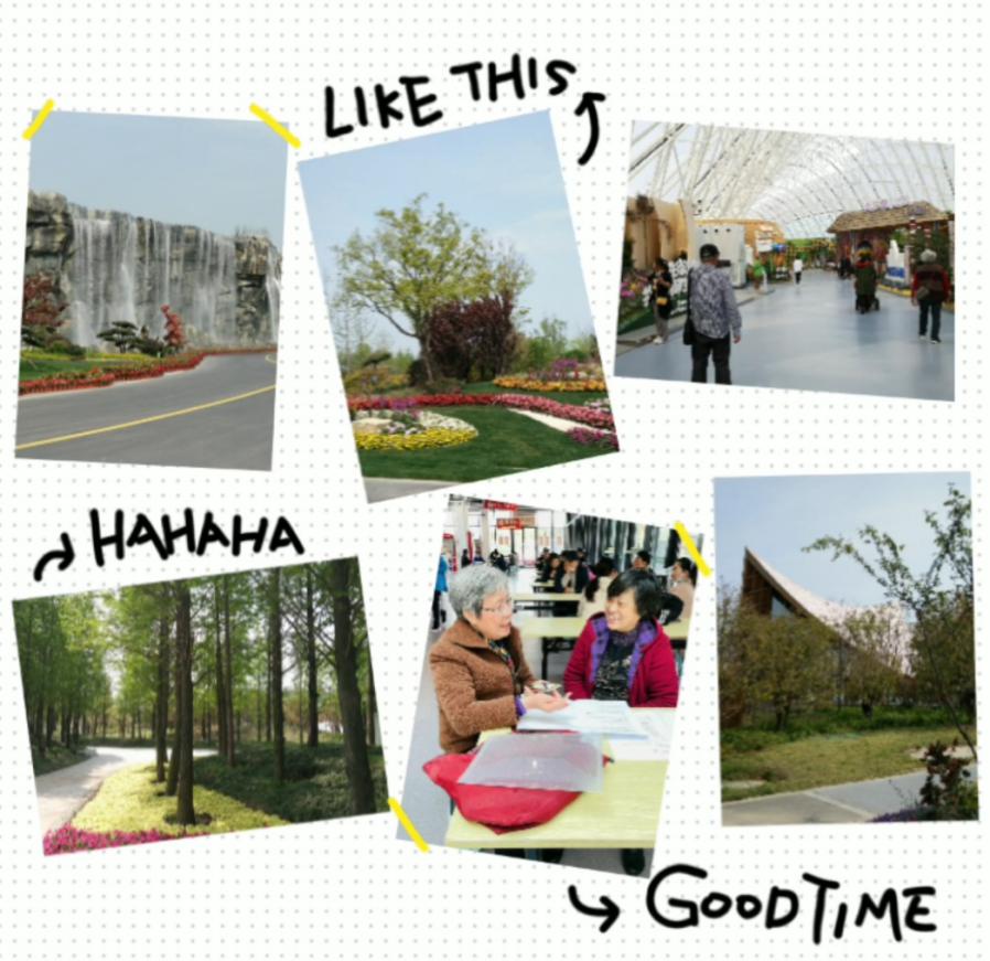 一天的游览,大家心情愉悦,久别的重聚舒缓了一年多隔屏的思念,老同志们在园区的阳光下和花草间畅谈今日美好生活,互祝健康快乐。