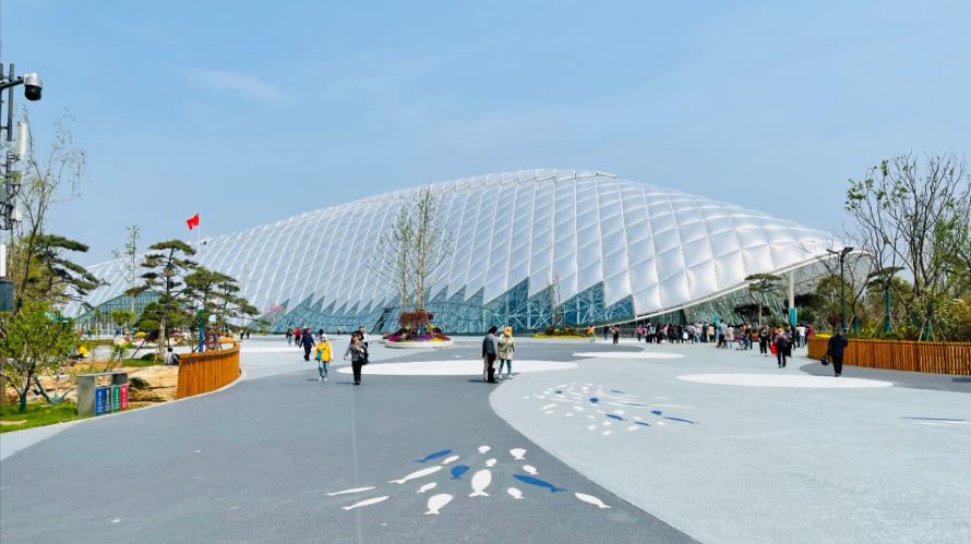 老同志们一行有说有笑,驱车一个多小时,来到美丽的枣林湾。2021年扬州(仪征)世界园艺博览会于2021年4月8日隆重开园。园区内,空气清新,绿草茵茵,百花争艳,鸟语欢歌,一派春意盎然的怡人风光。园区分为东、西两个大区,西区为原省园会改造提升区域,面积120公顷,东区为新建区域,面积110公顷。园区以园林、农田、水系、林地等要素为主,南北地势起伏变化,呈现出典型的低山丘陵风貌。