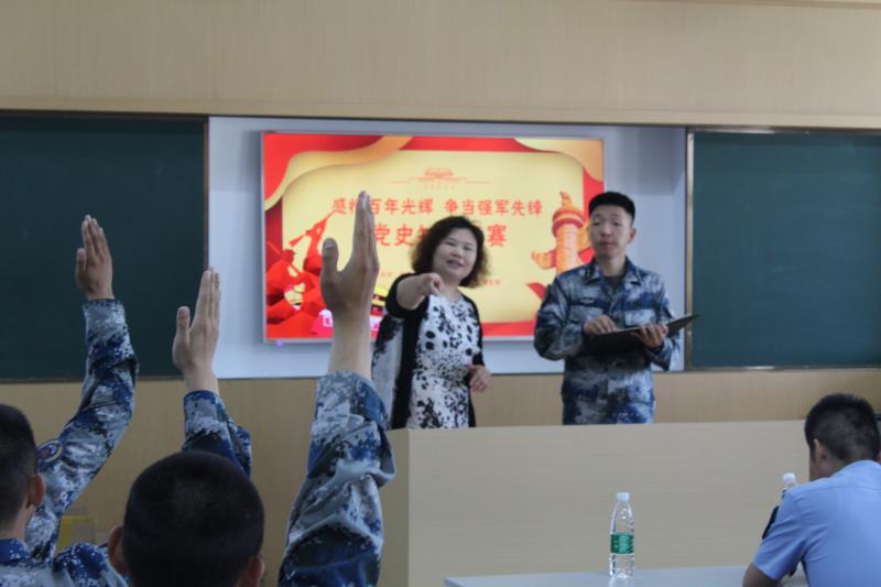 教师党员们与驻地部队警卫连党支部官兵一起举办了“感悟百年光辉、争当强军先锋”党史知识竞赛。在党史知识抢答环节,双方党员争先恐后,你来我往,对答如流,场面热烈,充分展现了良好的党史学习成效。随后,双方党员还分享了自己在学习党史过程中的感受和收获,他们纷纷表示通过本阶段的党史学习,进一步提升了对党的认识,进一步坚定了跟党走的信念,进一步提升了干事创业的热情。