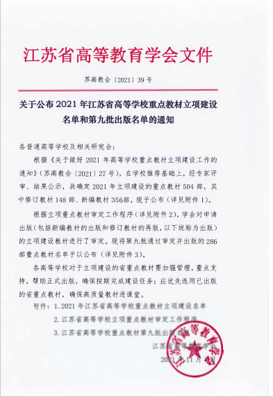 近日,江苏省高等教育学会发布了《关于公布2021年江苏省高等学校重点教材立项建设名单和第九批出版名单的通知》(苏高教会〔2021〕39号),哔咔漫画
