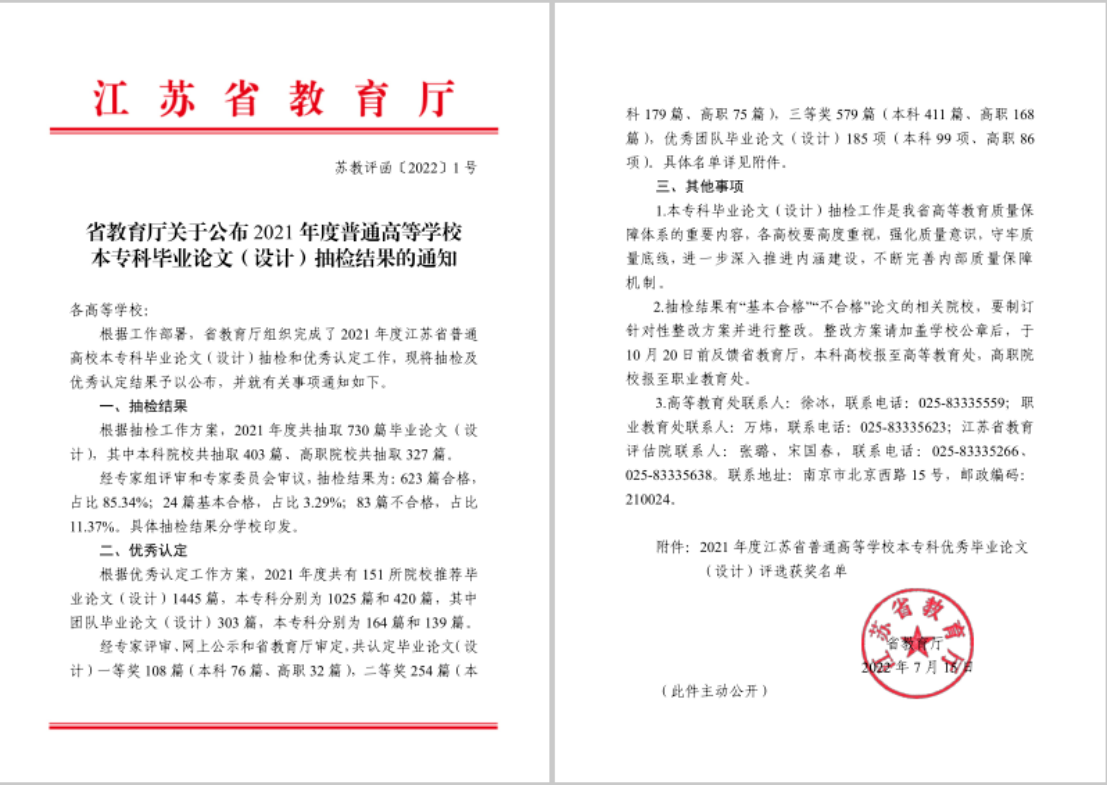 近日,江苏省教育厅公布了2021年度普通高等学校本专科毕业论文(设计)抽检和优秀认定结果。哔咔漫画