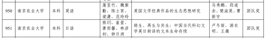英语和日语专业团队各自斩获一项省级优秀团队毕业论文(设计)。英语专业团队毕业论文题目为《英国文学经典作品的生态思想研究》,由蒲昱竹、魏紫勤、陈士宵、梁潇、范玲玲共同完成,指导教师为马秀鹏、段道余、樊淑英、曹新宇;日语专业团队毕业论文题目为《转生、再生与共生:中国当代科幻文学英日转译的文本生命存续》,由熊玥、崔萱、唐雨馨、林彦初、钟日洲共同完成,指导教师为卢冬丽、游衣明、王薇。