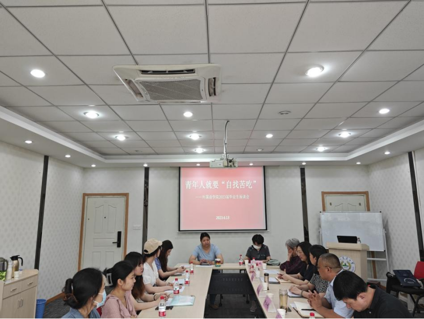 在教学楼A310会议室举办“青年人就要‘自找苦吃’”2023届毕业生座谈会。院长裴正薇,院党委副书记韩立新,副院长李震红、马秀鹏,院关工委常务副主任邓昭春,退休党支部书记、院关工委副主任江胜强,院关工委委员徐增明,辅导员曹璇,毕业生代表等参加了座谈活动。
