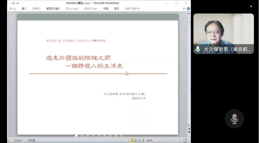 本次讲座大久保明男分享的回忆录是一部个人史,学术及学术交流史,也是新时期遗孤的历史,引发了师生对民族个人与历史时代的思考,以及对和平当下的珍爱。此次讲座也进一步丰盈了日语语言文化交涉专题讲座的主题与内容,加深了师生对文化交涉的理解和认知。