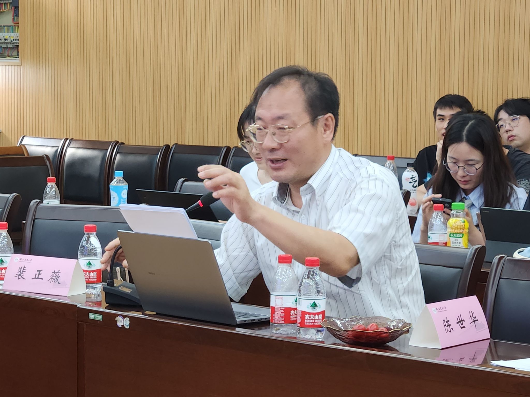 针对以上学术汇报,内田庆市指出,教师与研究生的研究主题都具有一定的创新性,并从语言、文学、社会、文化等角度对中日语言文化交涉学进行了阐释,不仅丰富了文化交涉学的研究内容,也为学院确立国内中日语言文化交涉研究特色提供了新思路。内田教授还结合世界范围内文化交涉学的发展现状,讲解分析了该领域在中国的发展前景。陈世华针对师生的汇报提出了指导意见,他建议同学们要广泛阅读,丰富知识面,培养问题意识,形成批判性创新思维和交叉思维;同时鼓励师生继续深挖完善研究课题,积极尝试申报项目,培养科研团队意识,共创科研成果。