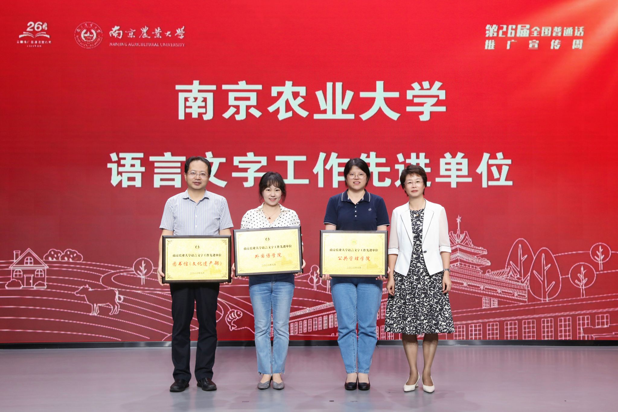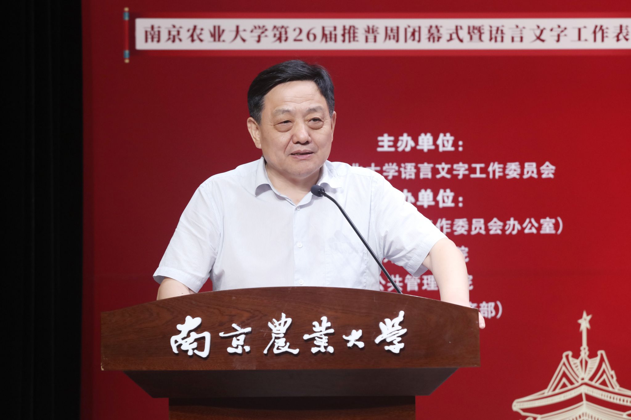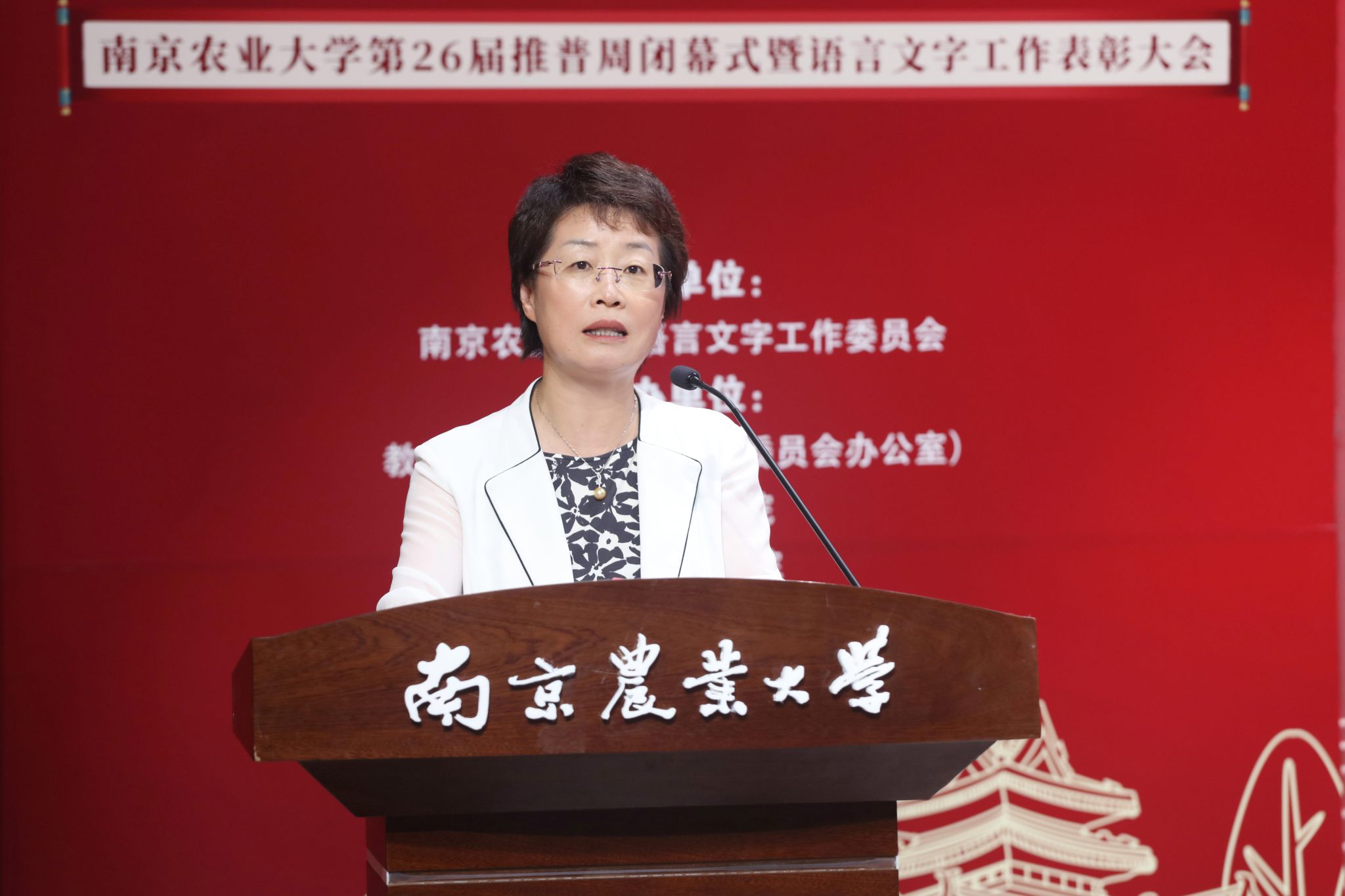 创新性地联合南京大学、东南大学、南京理工大学成立“推普联盟”,举办高水平推普讲座、诵读比赛、文字创意大赛路展等丰富多彩的活动,在校园内营造了浓厚的推普、学普氛围,促进了学校语言文字工作走深、走实,形成了广泛的社会影响。她强调,推普工作任重道远,一是应当加快促进校内组织与校际联盟相融合,构筑校内外一体化语言工作格局;二是促进第一课堂与第二课堂融合,将语言文字工作作为立德树人的重要抓手,将其贯穿人才培养全过程;三是把文化育人与服务国家战略相融合,充分发挥学校的农业优势和特色,主动对接乡村振兴、农业农村现代化等国家战略,彰显南农的使命担当。