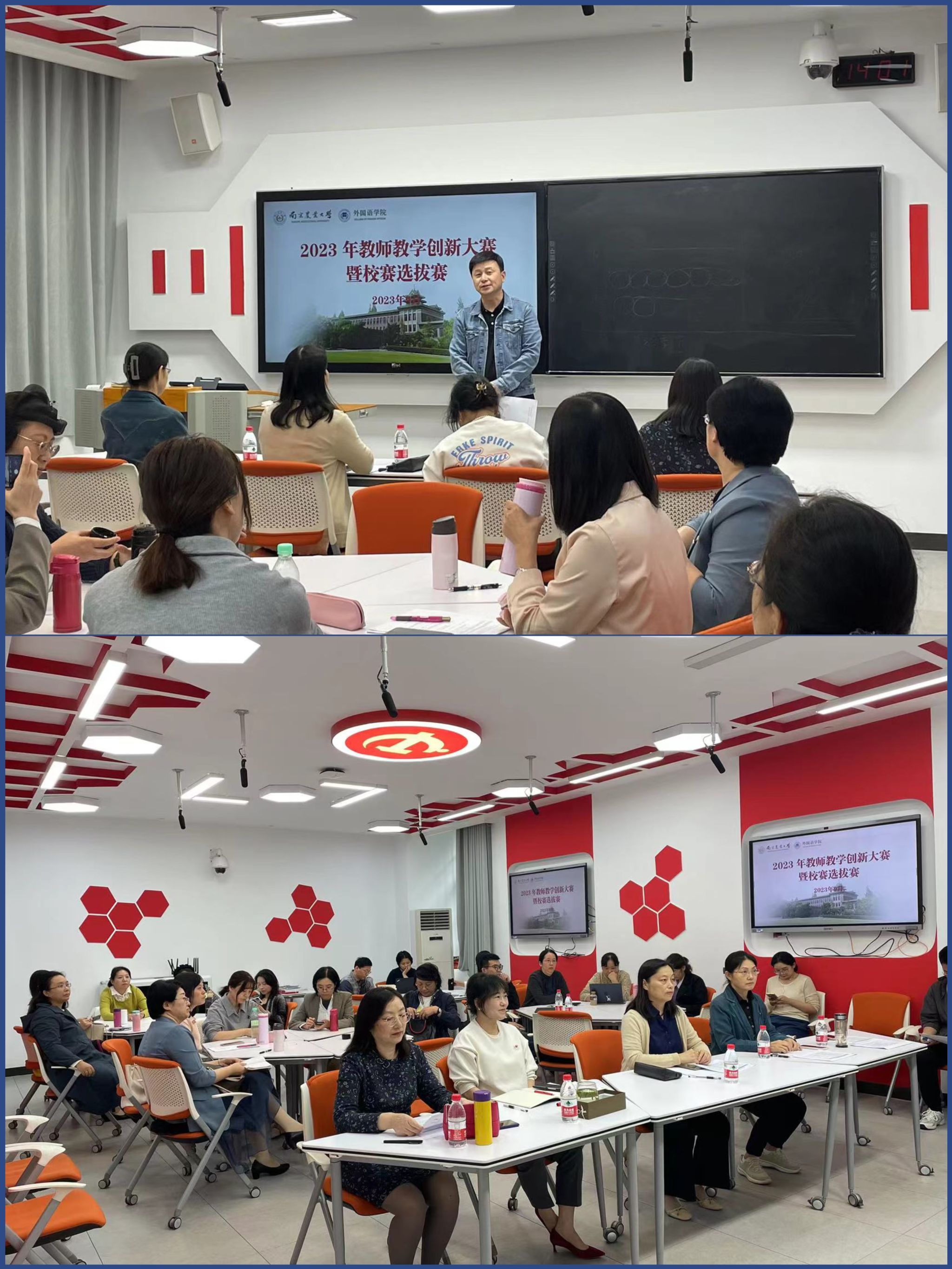 在教学楼B101智慧教室,组织开展了2023年教师教学创新大赛暨校赛选拔赛。学院党委书记董红梅,院长裴正薇,副院长李震红、马秀鹏,学院教学指导委员会委员金锦珠等5人担任评委,活动由马秀鹏主持。