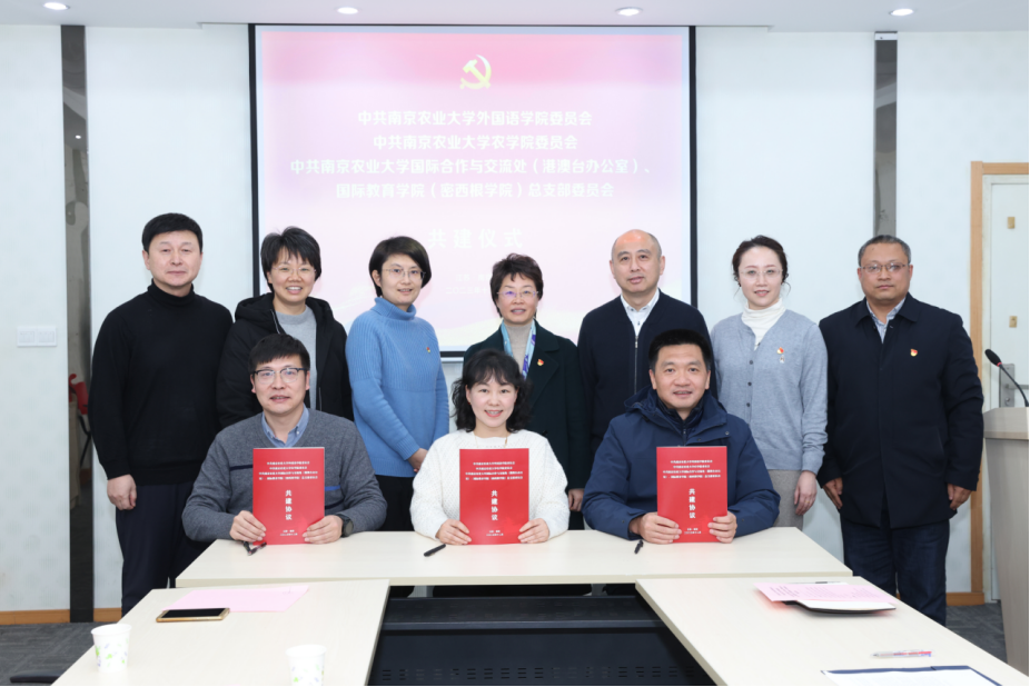党委与农学院党委、国际合作与交流处(港澳台办公室)/国际教育学院(密西根学院)党总支在教学楼A310会议室举行党建共建仪式。校党委常委、副校长朱艳同志出席共建仪式。三个单位党组织负责同志及师生党员代表等参加了活动。仪式由哔咔漫画