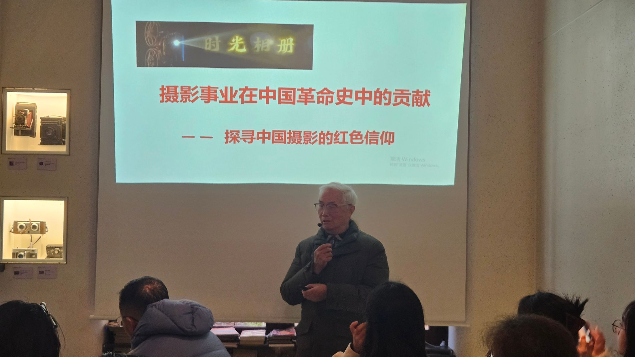讲座结束后,吴琴生引领党员同志们步入一段穿越时光的影像长廊。从摄影思想的源起——墨子的小孔成像,到标志着中国自力更生的南京首台单反;从定格领袖瞬间的百灵相机,到默默助力哔咔漫画