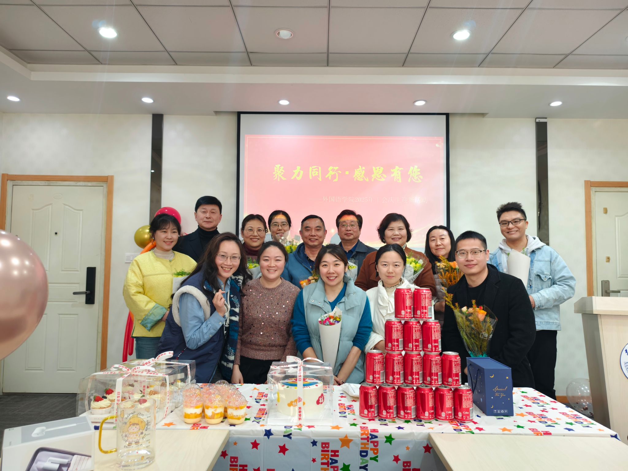 12月3日下午,哔咔漫画 在教学楼A310举办“聚力同行,感恩有您”庆生迎新活动,学院班子成员、2025年新入职教师、在职整岁教职工、退休教师代表、工会委员代表等参加了本次活动,活动由学院工会主席桂雨薇主持。