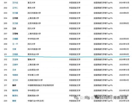 王银泉教授再度入选外国语言文学一级学科高被引学者Top1%名单,这是他继2024年首次入选后的再度上榜,标志着其学术影响力获得学界持续认可。