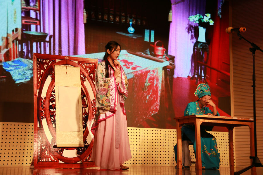 团委承办。自3月启动以来,戏剧节共有各学院50余组,约300名学生参与,参赛的学生既有来自外语院日语和英语专业的同学,也有自学法语与日语的同学,更有来自国际教育学院的留学生,活动参与十分广泛。本届戏剧节在举办过程中,以“向经典致敬”为主题,参赛的剧目中既有中国经典剧目《红楼梦》、《荆轲刺秦》、《牡丹亭》,也有西方经典文学作品《变色龙》、《窈窕淑女》、《俄狄浦斯王》,更有中外改编的经典影视作品《绿野仙踪》、《灰姑娘》等。