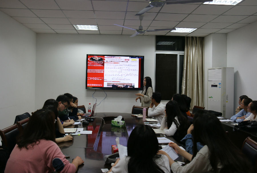 每一位党员同志都针对国内外热点话题作了充分准备,进行现场展示分享。首先,胡佳李和陆孙男同志着眼于当下热点政治问题,聚焦“第十二届全国人大四次会议”,重点介绍了“五位一体”和“四个全面”的战略。黄雅刚同志着眼于我国外交事业的新进程,从澜湄合作首次领导人会议、中捷关系到第四届核安全峰会,展示了我国在国际事务中日益突出的成就。毛真则从经济发展的角度出发,介绍了营改增等方面的知识,深发自己的感想。在社会热点问题层面,蒋佳琦、刘珊珊、刘雯锋和王鑫同志分别从学术剽窃、 “马拉松”运动、山寨“罗斯柴尔德”以及外卖的安全卫生问题,对目前的社会热点问题与大家进行了分享,并与现场党员进行交流互动,以促进所有党员同志对热会热点问题的关注和反思。