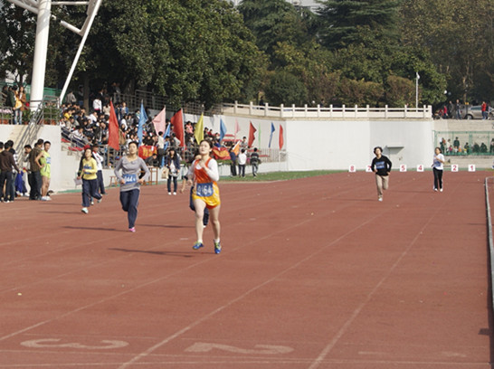 下午的决赛十分引人瞩目,进入决赛的八名选手都是跑步的高手,并且个个自信满满。站在起跑线上,任娟不紧不慢的做着准备活动,压压腿,扭扭胳膊,脸上淡淡的笑容表现出了她此刻的从容与自信。400米说长不长,说短不短,恰恰是这400米的跑道,考验着运动员们的身体和心理素质。发号声响,选手们都奋力起跑。任娟在队伍中保持着一定的速度。最后在外语院同学的加油呐喊声中冲过了终点线,获得了第八名的好成绩,为外语院再得一分。
