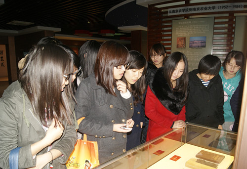 辉煌的建校历程。环绕展馆大厅依次展出历任主要校领导照片,以及植物学部、动物学部、资环学部、工程学部和社科学部学术大师的照片及简介。馆内还陈列有金善宝院士的亲笔书信、世界首支青霉素等诸多极富历史价值的展品。出口处,还展出了由南农师生共同组成、破吉尼斯世界纪录的最大笑脸图片。