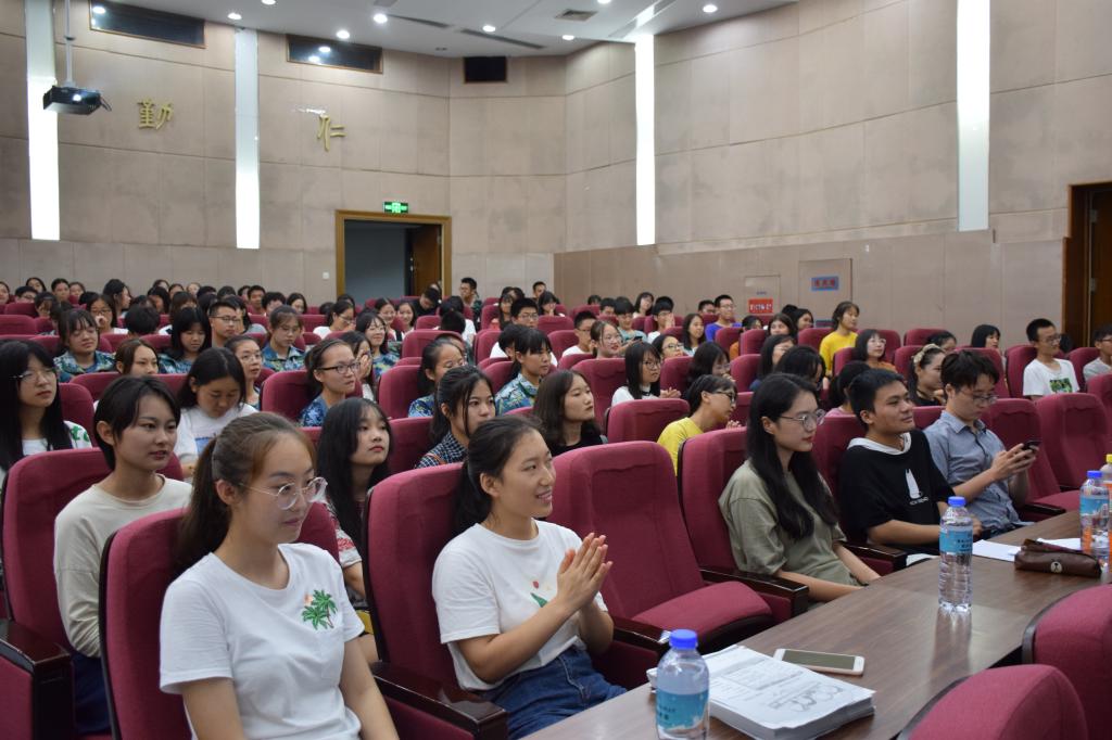 新生进行了题为“外语学习与大学规划”的入学教育。他结合自己大学学习和求职经历,从企业选拔人才的角度出发,给出了语言学习与职业规划方面的建议,让新生们对未来专业的学习和未来职业的规划有了一定的认识与了解。