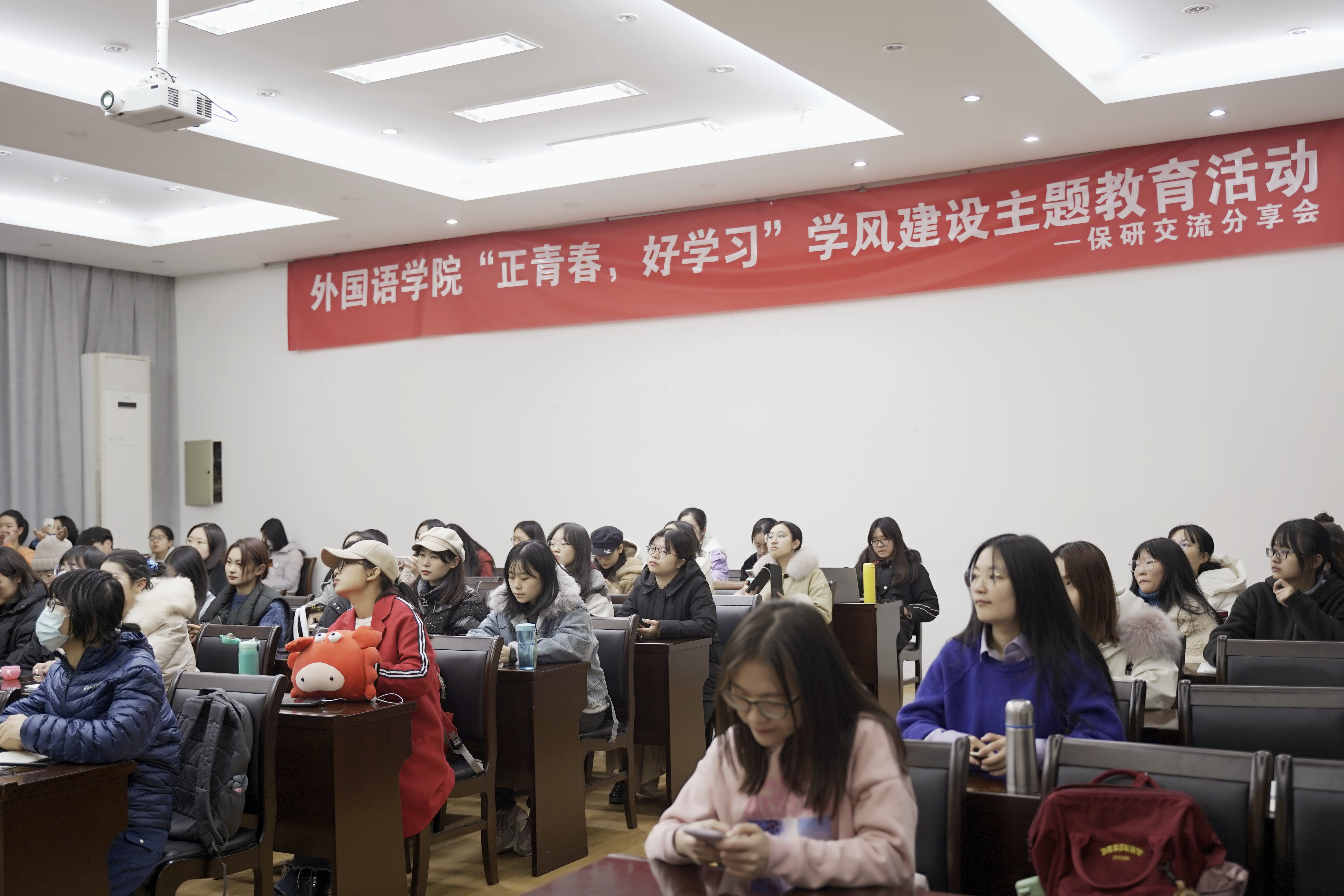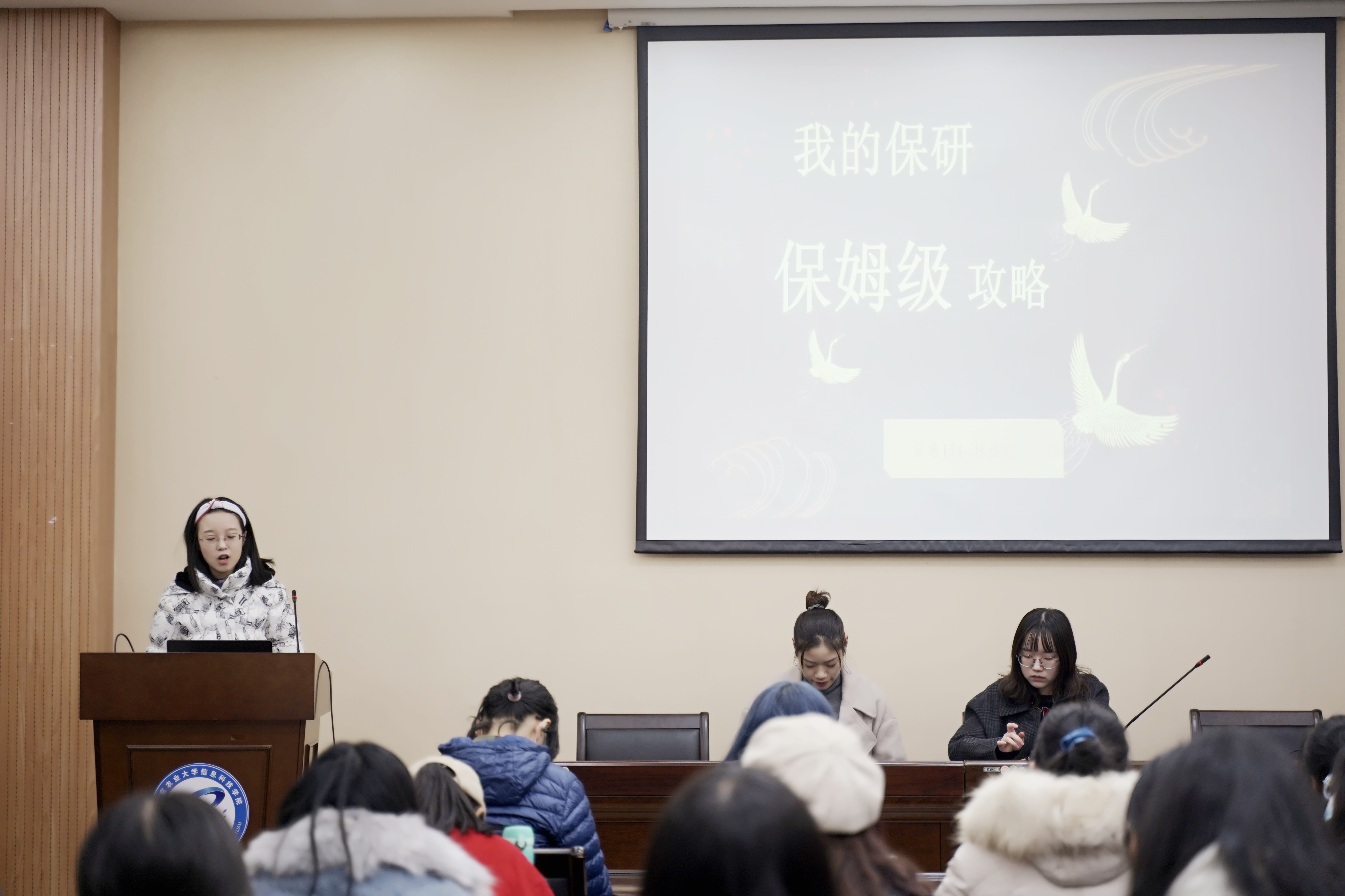 保研交流会在教学楼七楼报告厅举行。2020年推免的五位2017级学生为哔咔漫画